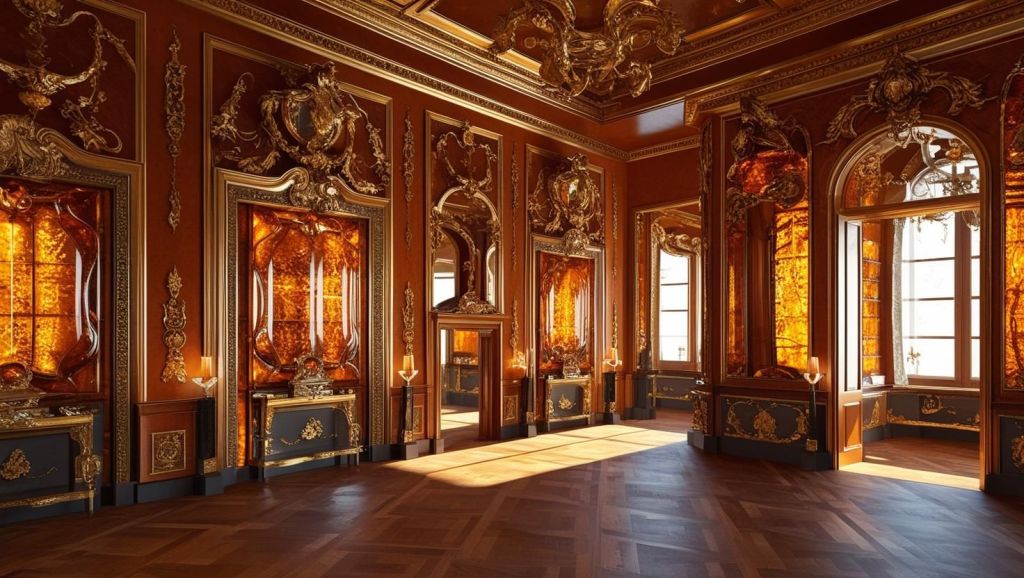 A priceless room made of pure amber and gold, originally built in the 18th century in Prussia and later gifted to Russia.